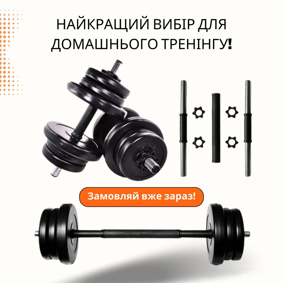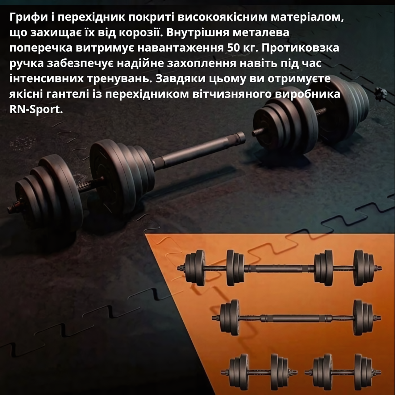Набір штанга гантелі комплект складальної гантелі штанги композитні для дому RN Sport Dumbbells-Barbell 32 кг